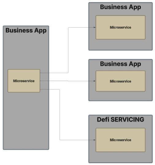 When we model designs by hand today, we map integrations at the System/Module level like this, essentially rolling up the microservice to it’s parent business app: