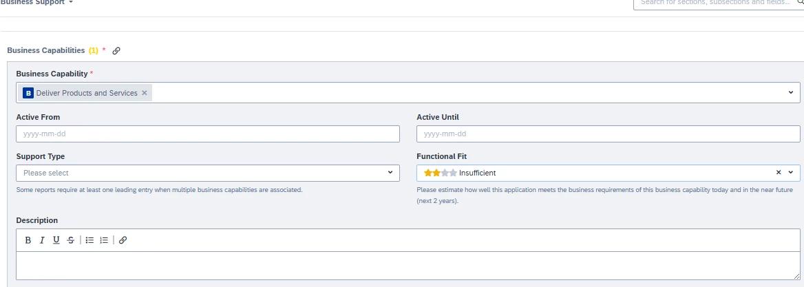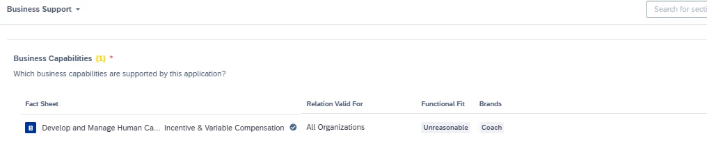 Because “Region” on the relation is a multi-select, I cannot create a second entry of the same capability with a different Functional Fit.