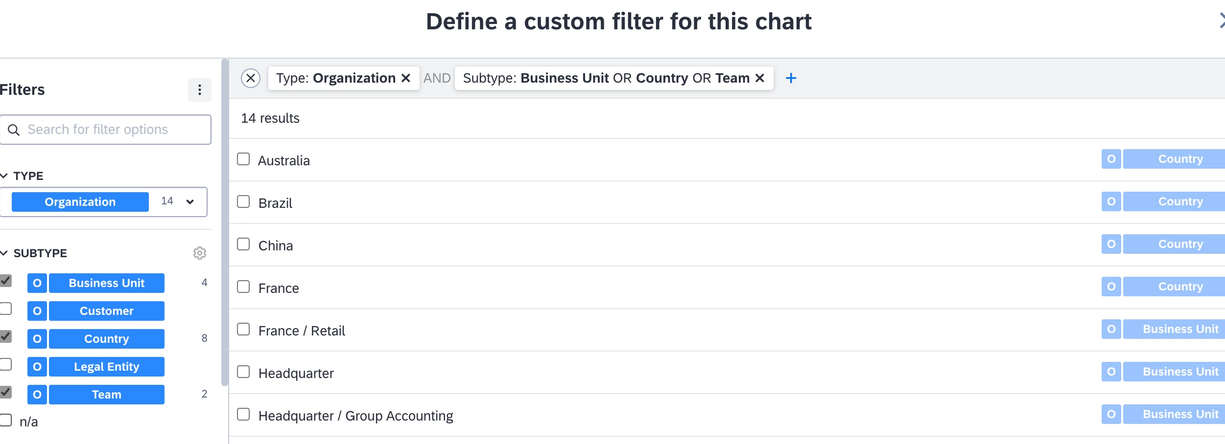 I am facing 2 issues, anyone have experience or proposal for that? I don’t want to create another factsheet type just because I’m missing a subtype filter...is there a solution I don’t see?