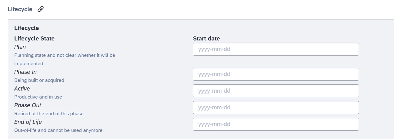 For example, if a customer uses SAP and has already filled in the Application Lifecycle, why do I need to specify these dates again at the Business Capability level? What's the purpose of having both, and what's the difference between them? The distinction isn't clear to me