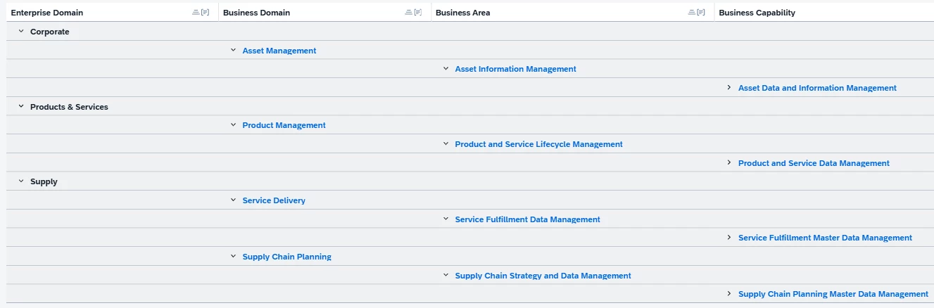 - Avez-vous, à l’inverse, créé votre propre Business Capability de gestion des Masterdatas ? quelle est la hiérarchie choisie ?