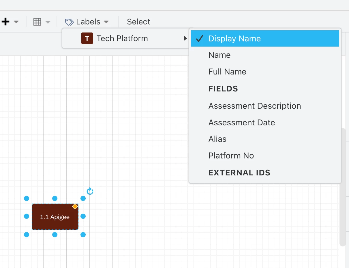 I want to create a diagram containing our enterprise-wide business capabilities that includes the capability name plus a reference ID we have assigned to each capability (we have created an attribute field for “Capability Number” in the fact sheet).