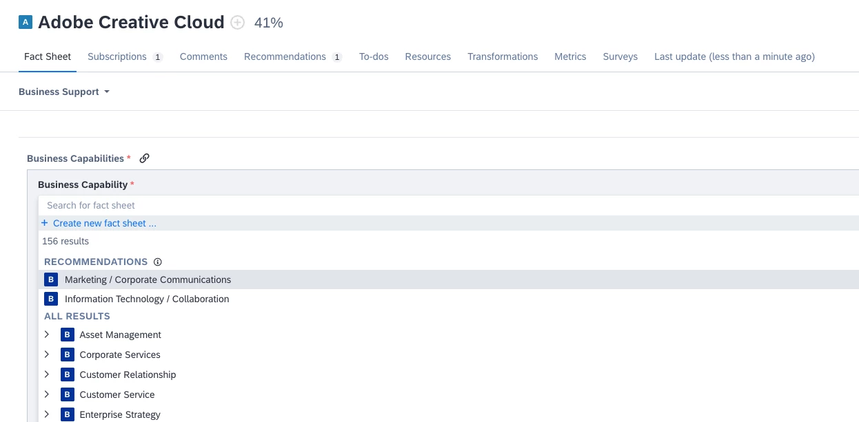 Strong ownership ensures that data is not only entered, but also maintained. Check out our documentation about Fact Sheet subscription.